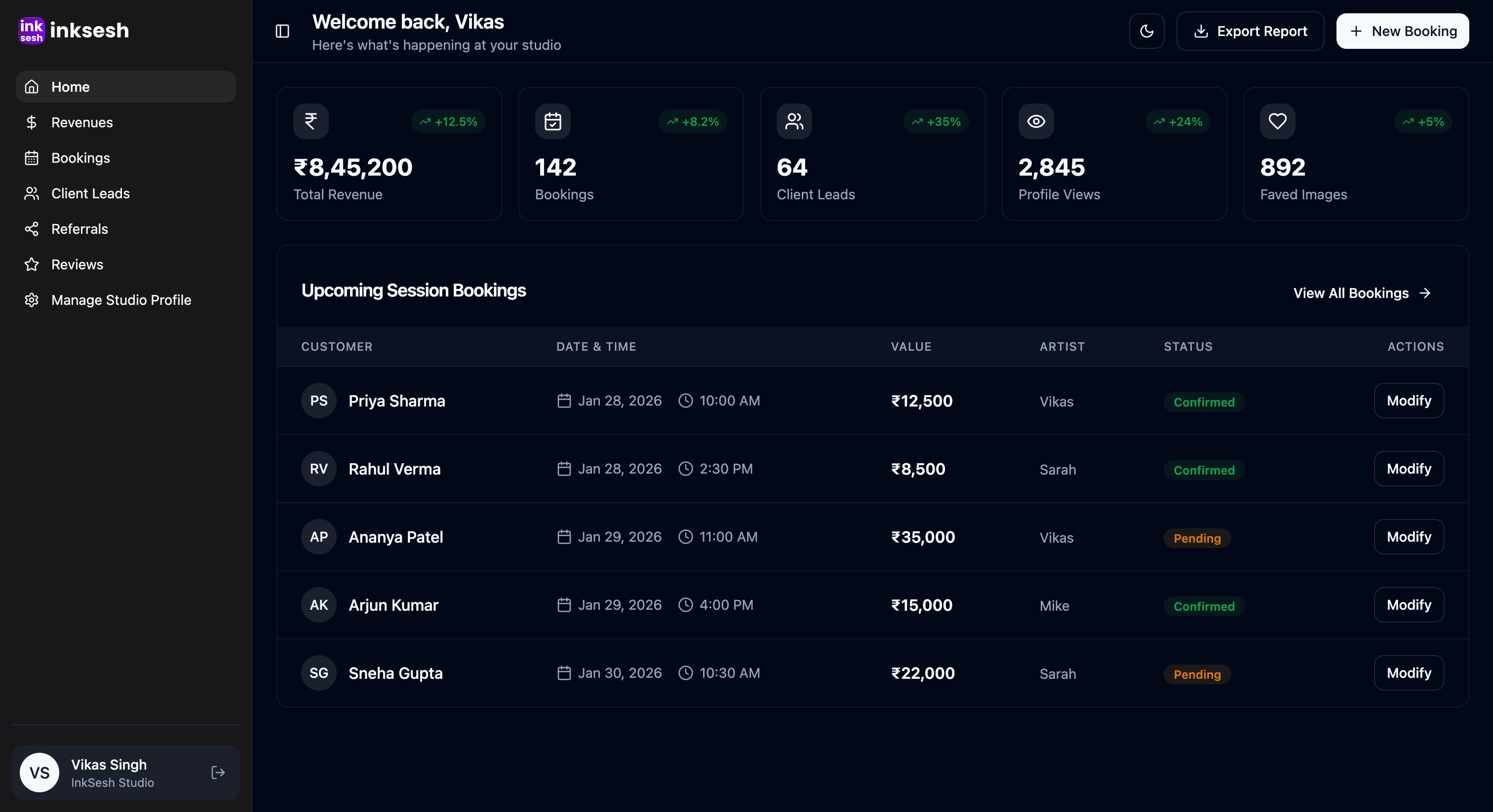 At InkSesh, we believe great art should always rise to the top, not whoever spends the most on ads. That's why the platform has no "pay more for more visibility," "featured," or pay-to-win models. Your ranking and visibility are earned, not bought. Studios and artists grow on InkSesh based on what truly matters: genuine customer love reflected in consistent, authentic reviews and repeat bookings, a strong, honest body of work that showcases creativity, craftsmanship, and attention to detail, and thoughtful, timely responsiveness to customer queries and bookings. When you focus on quality, professionalism, and treating customers right, InkSesh amplifies your work and helps it reach more people organically. Because InkSesh is built on merit - creating a trusted tattoo ecosystem where passion, skill, and people skills matter more than marketing budgets...